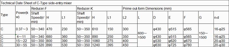 Смеситель бокового входа типа C может быть установлен в нефтяном баке, баке для смазки, баке для топлива, баке для парафина, баке для асфальта (для тяжелого резинового асфальта, базового нефтяного битума, асфальта марки А) и в некоторых резервуарах для хранения присадок и других сред, которые нужно помешать.