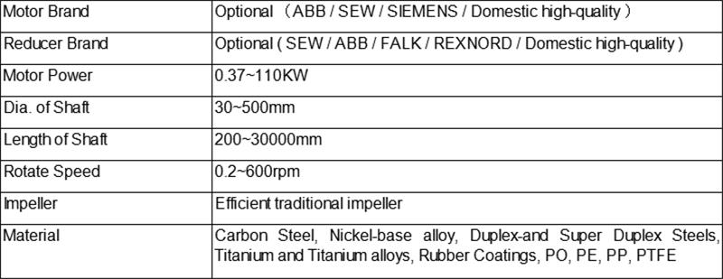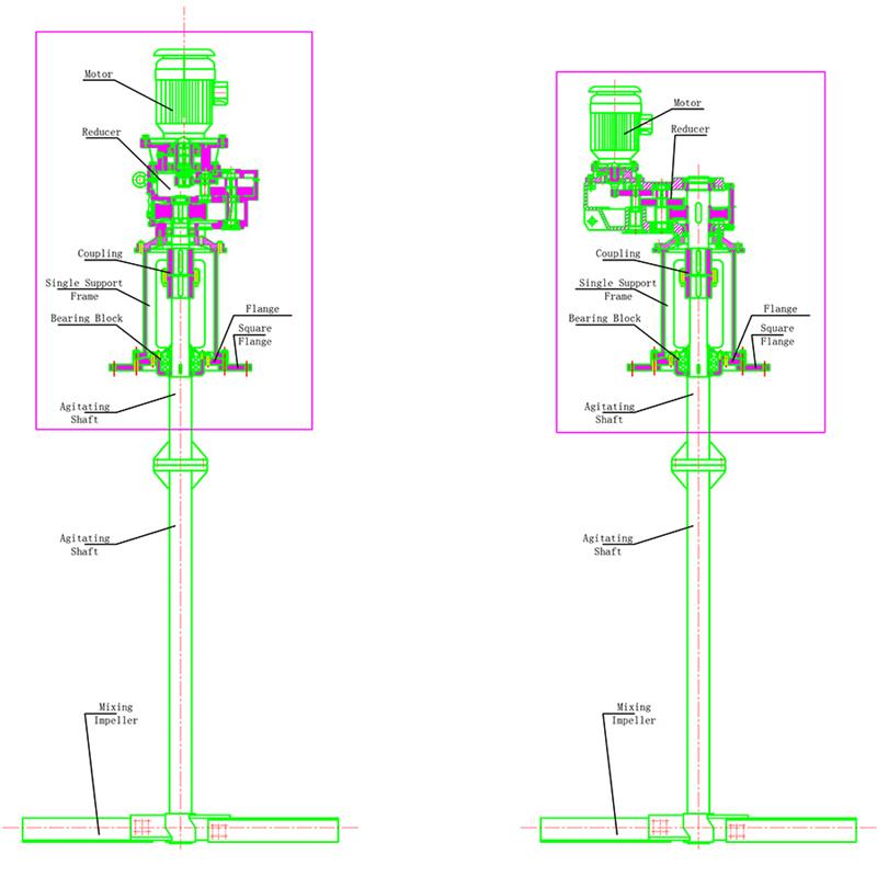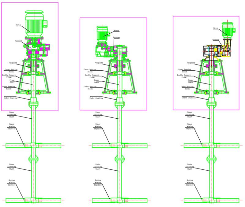 1) Вертикальная центральная форма установки для перемешивания. Характеризуется тем, что вал мешалки и мешалка расположены на центральной линии резервуара для перемешивания и расположены симметрично.Режим движения — ременная передача, зубчатая передача или передача замедления, а также прямой привод от двигателя.Мощность смесительного оборудования может варьироваться от 0,1 кВт до сотен киловатт, а обычный диапазон мощности составляет 0,2–22 кВт.Как правило, мощность составляет менее 3,7 кВт для небольших размеров, от 5,5 до 22 кВт для средних размеров и более 22 кВт для больших размеров.Маленькие миксеры используются в пищевой промышленности.Низкоскоростной тип ниже 100 об/мин, среднескоростной тип — 100–400 об/мин, высокоскоростной тип — более 400 об/мин.В зависимости от применения конструкция лопасти может комбинироваться по-разному, с трехлопастным гребным винтом.Турбина является основным корпусом и может быть объединена в различные конструктивные формы для различных целей.Большая часть этого смесительного оборудования стандартизирована в зарубежных странах.Диапазон скоростей от 300 до 360 об/мин, мощность двигателя от 0,4 до 15 кВт.Он приводится в движение за счет замедления первой ступени с помощью ременной или зубчатой передачи.