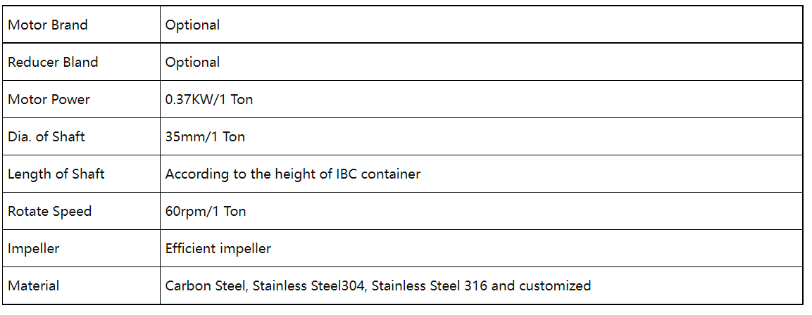 Мешалка для контейнеров IBC используется для гомогенизации, суспендирования и растворения жидкостей в контейнерах IBC.KEHENG MIXING предлагает различные электрические мешалки, подходящие для различных применений.